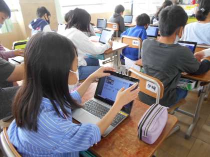 今日はロイロノートを使って,課題の提出の仕方を学習したり,友達のロイロノートを見合ったりしました。自分の名刺を作って,みんなに知らせるという活動でしたが,自分なりにアレンジして,一人一人魅力的な名刺を作っていました。友達のロイロノートを見ることを通して,「自分もやってみたい」「そんなことできるんや」とやってみたいことを見つけてどんどん学習を進めていました。自分のノートを提出したり,自分の画面をみんなですぐに共有できたりすることに子どもたちは魅力を感じたようです。色々な学習でたくさん使っていきたいと思います。
