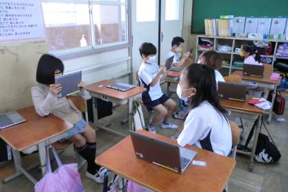 毎週水曜日のGIGAタイム,今回は動画撮影に挑戦しました。自己紹介をする友だちの様子を撮影し,撮れたものを確認します。ピントを合わせることにも一苦労ですが,一つ一つ覚えるたびに喜びの声でいっぱいです。