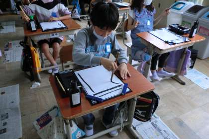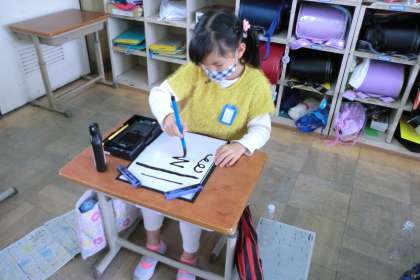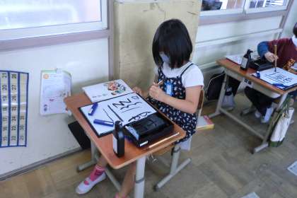 ドキドキしながら初めて筆で線を書いてみると新しい発見もたくさんあったようです。