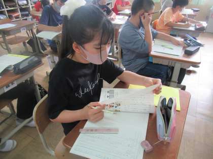 国語科で「時計の時間と心の時間」という説明文の学習をしています。この学習の最後には自分が考える「時間」と付き合うベストなちえについてポスターセッションで提案します。そのために,それぞれが《問い》を立て,筆者の主張や事例について自分の考えや体験と結び付けながら考えています。粘り強く,じっくりと考える子どもたちの姿は素敵です。「え?もう国語の時間,終わるの?」そんなつぶやきもありました。集中している時,夢中になっている時の「心の時間」は早いですね!