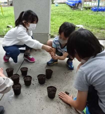 先日記録した「ツルレイシ」「ヘチマ」「ヒョウタン」の種を植えました。土の入れ方,種の植え方など今までの経験をいかしてできたようです。