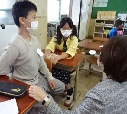 と歯ざわりやみずみずしさを感じられる言葉を使って話していました。その話に共感する子どもが大勢いて,うなずきながら聞いている姿がありました。