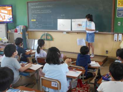 算数の学習では,自分の考えを分かりやすく友達に伝えることを頑張ってやっています。どうしてその式になるのか,関係図や数直線図で説明しました。今日から小数のわり算の学習になりました。小数のかけ算のことを思い出しながら頑張ります。