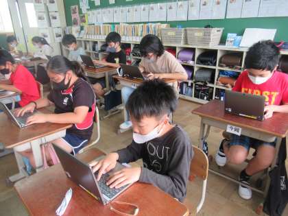 今日のGIGAタイムは,タイピングに挑戦!国語科の学習で,登場人物の「もどかしさ」について考えた子供たちは,6年1組の『ポジフル掲示板』に自分の考えを投稿します!そのためには,文章が打てるようにならなくてはなりません。タイピングの練習をした後,第1回タイピング選手権を開催しました。友達と競うことで,いつも以上に真剣な眼差しでGIGA端末と向き合っていました。練習あるのみです。