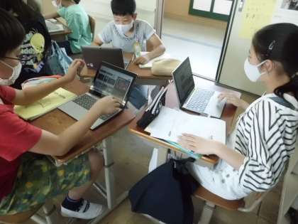 6年生の外国語の時間,今日は外国からの観光客に紹介したい日本の行事を1つ選び,班の友達と協力しながら,魅力的な発表になるように,その行事の季節や月,その行事でできることを考えました。さらに,GIGA端末を使い,スペルを確かめたり,観光客を惹きつけるための魅力的な資料を提示する方法も学習したりした子ども達・・・新しいことにもどんどんチャレンジしています☆
