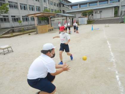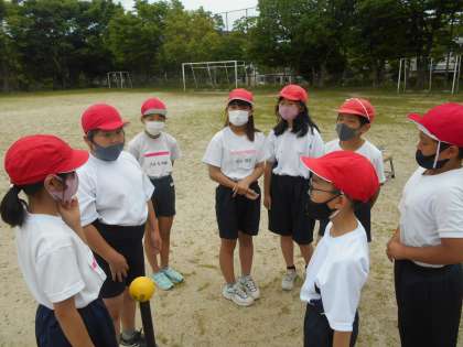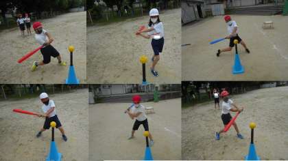 先日からベースボールの学習がはじまりました。どうにかしてボールを遠くに飛ばしたいと休み時間も話をしている姿が見られました。どういう角度でバットをボールに当てたらよいかなど,自分たちで一生懸命考えていました。その話を生かしての今日の体育の授業でした。一人一人のスイングは力強く,的確にボールをとらえて前に飛ばすことができるようになってきました。