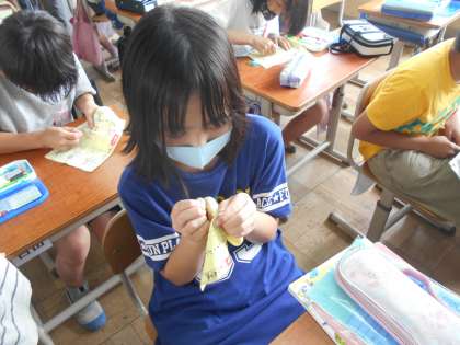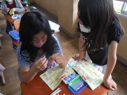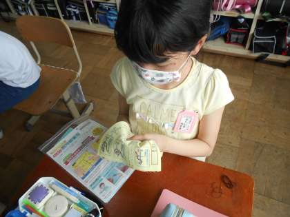 裁縫の学習も時間を重ねるごとに上手になってきました。玉止めや玉結びがスムーズになり,楽しく活動しています。今日はなみ縫いと本返し縫いを学習しました。本返し縫いは少し難しかったですが,しっかりと理解できたようでした。