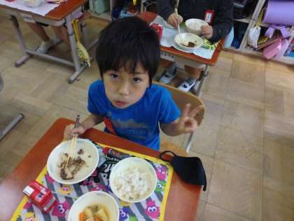 その後、魚の栄養についても学習。「ちあい」など、今まで知らなかった言葉もでてきました。鯖の食べ方も学習したところで…今日の給食は「鯖のかわり煮」!