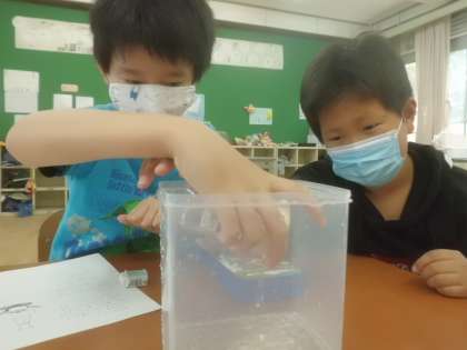 あおぞら学級5・6年生の理科「空気と水」の様子です。