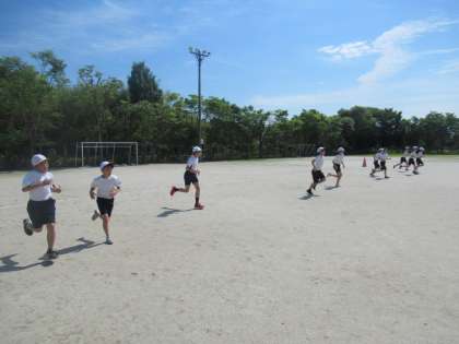 新体力テストの「シャトルラン」を行いました。2年ぶりのシャトルランに最初はペースがつまめず戸惑っている子どもたちでしたが,慣れてくるとリズムよく走ることができていました。新記録が出せた子やなかなか思うように走ることができなかった子などさまざまでしたが,暑い中,よく頑張りました。