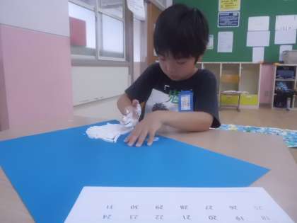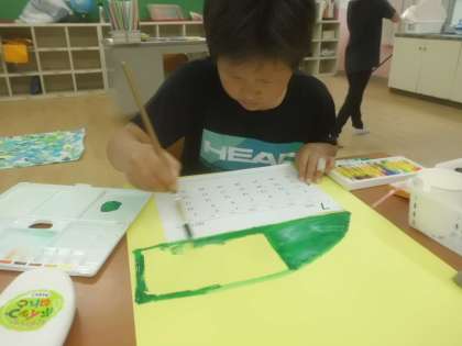 子どもたちは,前回の6月のカレンダー制作で身につけた様々な技法を応用しながら工夫しています!