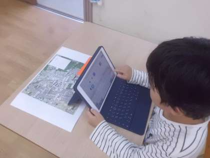 子どもたちは,音声検索を使って調べたり,地図アプリで調べたりとても意欲的に学習しています。