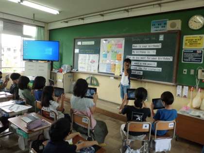 5年生の外国語の時間,今日はいよいよパフォーマンスチャンレンジの日・・・。がんばって取り組んできた成果を校内の先生方にも見てもらおうと,誕生日と誕生日にほしいものを伝え合う様子を「チーム・GIGA」のメンバーが動画撮影しました。緊張した中にも,英語で話すことに少しずつ自信をもち始めている「心の成長」が見てとれ,頼もしい5年生でした☆