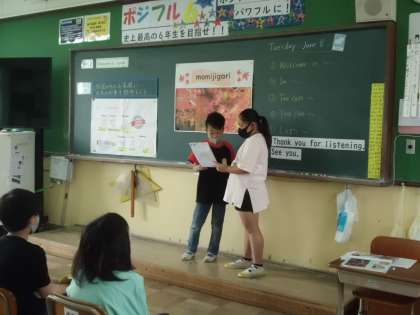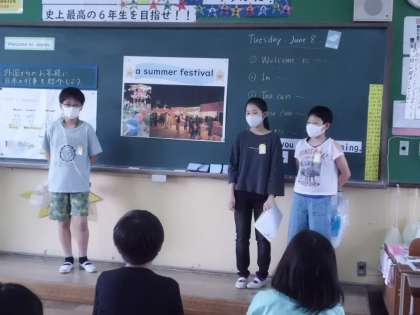 6年生の外国語の時間,こちらも待ちに待ったパフォーマンスチャレンジの日でした。グループごとに伝えたい日本の行事を選び,そこでできることを子ども達なりにアレンジし,上手に伝え合っていました。書いたことをそのまま読むのではなく,相手に伝わりやすくするために言葉を選んだり,ジェスチャーを取り入れたり,GIGAを使って説明したり・・・,4月に出会った子ども達の成長が嬉しいひとときでした☆一緒に見てくださった担任の先生も,「どんなパフォーマンスチャレンジになるのか,正直ドキドキしていたけれど,頑張って伝えようとするみんなを見て,感動した!」と話してくださいました。
