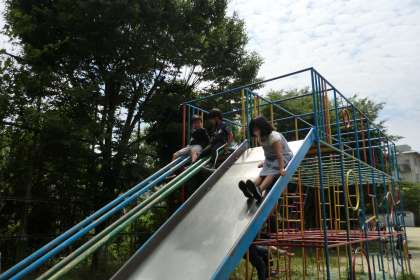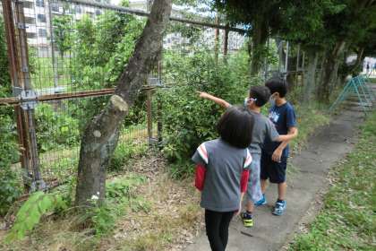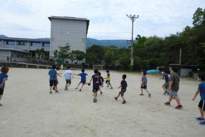 朝休み,中間休み,昼休み,いつも元気に外に飛び出して全力で遊んでいます。今日遊んでいる様子を覗きにいくと…いつもサッカーをしている子たちは今日は3年生から5年生の大人数で遊んでいました。また,総合遊具で遊んでいる子,虫を探している子,鉄棒の練習をがんばっている子,どの子も暑さに負けず元気いっぱいです!