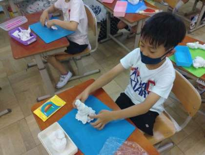 その後,「ねん土テクニック」を使って,作品作りをしました。