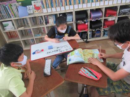 新型コロナウィルスの影響で,旅行に行けない日々が続いています。そこで,今日のコミュニケーションタイムでは「もしもツアー!〜あなたなら,どこで何をする?〜」というテーマでグループで話し合いました。「きれいな海で泳ぎたいな。」「僕は魚も見たいし,沖縄に行ったら両方できると思わない?」「私は,おいしいものが食べれるところに行きたいなぁ。」「あっじゃあ,イタリアで本格的なピザとかどう?デザートもおいしいものがいっぱいありそうじゃない?」・・・子どもたちの夢見る話はとまりません!お互いのやりたいことを上手に組み合わせたり,並び替えたりしながら,みんなの納得できるツアーを考えていました。