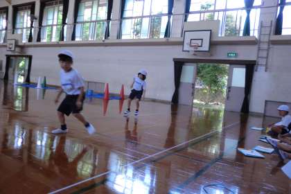 3年生は20mシャトルラン,ソフトボール投げ,反復横跳び,立ち幅跳びをしました。初めての種目もありましたが,やり方をすぐに覚えていい記録を出そうを必死で取り組みました。