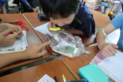 実際に飛んでいる蝶を観察するのは難しいですが,虫メガネも使いながらきちんと観察できました。