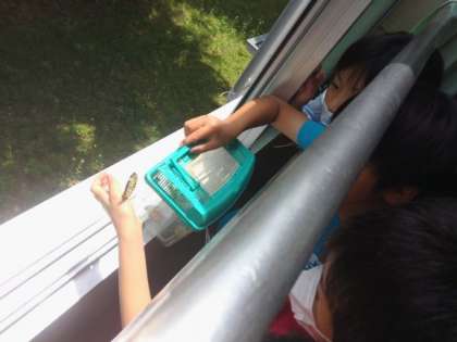 子どもの手からなかなか離れず,飛び立たなかったので,中庭に行って返してあげました。