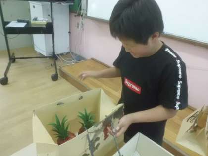 注意・集中する力,失敗を受け入れたり気持ちを切り替える力の習得を目的に行っています。気持ちを落ち着かせて目の前の空き缶に集中したり…自分が倒してしまったらぐーっと悲しみをこらえて,「さっ!次やろう。」と切りかえたり…さらに上手くつめた友達に「〇〇さんすごい!」と声をかけたりする姿が見られました。