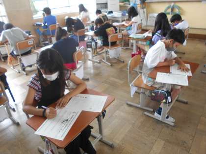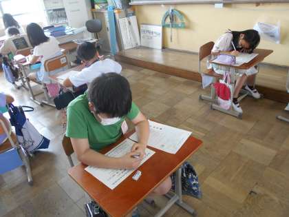 実技の後は学科試験に挑戦しました。自転車の正しい乗り方について自主学習ノート等を使って勉強していました。今日はその学習の成果を発揮できたようです。安全に自転車の乗れるようになってほしいです。