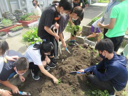理科の学習で,でんぷんがどのような条件でできるのかをじゃがいもの葉を使って学習しました。しっかりと学習したところで,じゃがいも掘りをすることに!少しでも大きなじゃがいもを見つけようと,みんな必死です。ある程度,掘り終わった後は・・・宝探しの始まりです。粘り強くじゃがいもを見つけ続ける子,幼虫を探す子・・・朝の楽しいひとときでした。