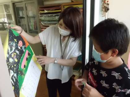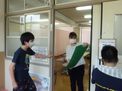 今回も「わーすごいねー。」「今回もここにかざらせてもらいますね。」と先生方にいっていただき,とっても嬉しそうな子どもたちでした。