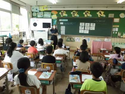 4年生の外国語活動の時間,自分の好きな時間についてたずねたり,答えたりしました。時計の針を見て,“It's 8 p.m.”“It's 10 a.m.”と時刻を表す表現もスムーズに発話できるようになってきた4年生。できることが増えると自信ももてるようになり,楽しそうに活動する様子に成長を感じました。