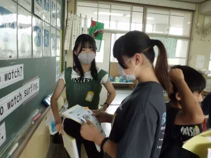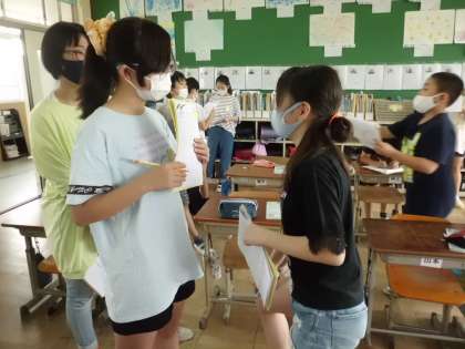 6年生の外国語の時間,見たいスポーツをたずね合う活動(パート2)をしました。セラ先生の見たいスポーツを予想したり,同じスポーツを見たい友達を探したりする活動を通して,意欲的に自己表現ができるようになってきた6年生。同じスポーツを見たい友達が見つかると,思わず“Let's watch〜together.”“Yes,let's.”子ども達どうしでこんな風にコミュニケーションができるようになったなんて・・・☆ステキな6年生です。