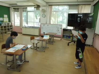 各場面ごとの挿絵を見ながら,自分が学習したいことを「自分の問い」として立て,その解決のための学習をしています。少しずつですが,問いを立てられるようになってきたり,自分の考えを言葉や文字に表して,解決できるようになってきています。