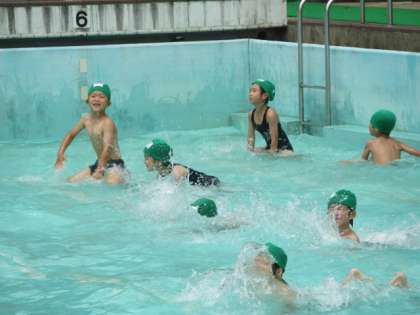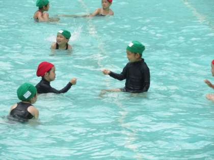 プールでの約束を聞いた後は,いよいよプールに入ります。