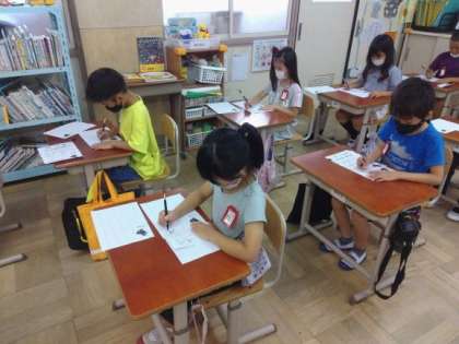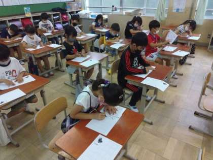 日頃の書写の学習で鍛えた腕前を披露する時間になりました。