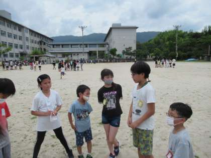 天気にも恵まれ,新しいたてわり班で,運動場で元気よく活動する姿が見られました。