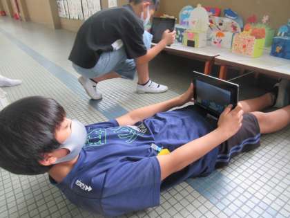 そして,最後には教えていただいたことを生かして実際に写真を撮ってみることに!いろいろな方向から試行錯誤しながら撮り続ける子どもたち!満足いく写真が撮れたら,カメラマンの方に見ていただき,アドバイスをもらっていました。