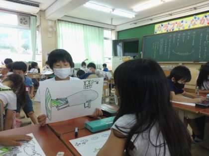 国語科の学習で,今はまだないけれど,「こんなものあったらいいな」と思うものを考えて,グループで発表しました。想像力豊かに,いろんな道具を考えていました。