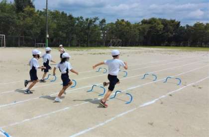 今日は,アイデア走の練習をしました。準備も後片付けも全て自分達で行い,てきぱきと動くことができました。暑かったので,2回しか走ることができませんでしたが,「もっと走りたかった〜」という声がたくさん上がりました。これから,まだまだ練習するのでたくさん走ることができますよ。お楽しみに!