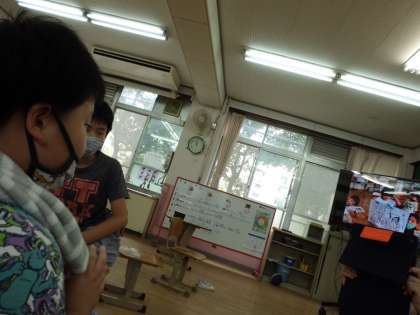 子どもたちは,自分の顔がテレビ画面に映ることや久しぶりのつくし学級の友達との交流であることなどで,緊張していました。しかし,今自分ができる限りの方法で,一生懸命発表したり,友達からの質問に答えることができました。