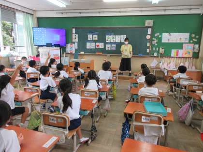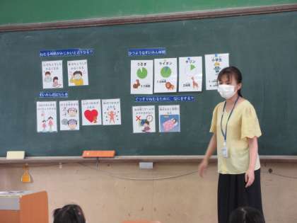 身体計測の前に,養護教諭の今儀先生に来ていただいて,保健のお話をしていただきました。早くねて,睡眠時間をたっぷりとることの大切さがよく分かりました。2学期が始まって10日あまり。いつものきそく正しい生活にもどしていきましょう。