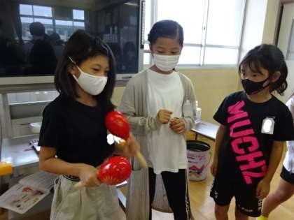 「いろんな木の実」で,それぞれの打楽器のリズムを練習しました。ギロ・クラベス・マラカス,それぞれリズムが違うので合わせるのが難しかったようです。