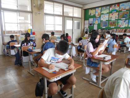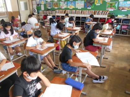 ジョイントプログラムテストを行いました。夏休みの宿題から目標をもって取り組んできました。一人一人が少しでも高い目標をもって取り組むことはとても大切です。点数や結果ももちろん大切ですが,何かに向かって自分のベストをつくすという過程も大切にする5年生であってほしいと思います。
