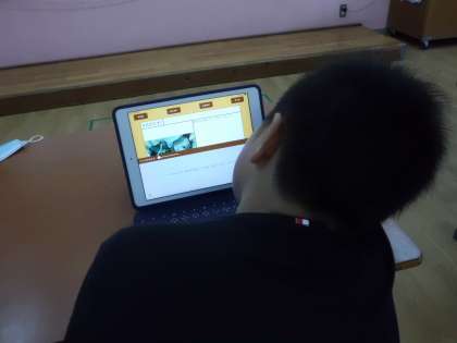 あおぞら学級のGIGAタイムの様子です。今日は,「にっき」アプリを使いました。