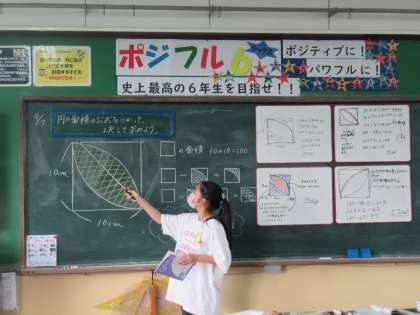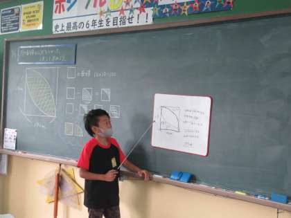 算数の円の面積の学習で,円を含む複合図形の面積を求めることに挑戦しました。円の面積の公式や既習の図形の公式を使って,差し引いたり,組み合わせたり・・・どうにかして面積を求めようと,粘り強く考える子どもたち。自分の言葉で,自分の考え方を説明します。友達の説明を何度も聞きます。その繰り返しで,どんどんと理解を深めていっています。「あっ!そういうことか!」とつぶやく子どもたちの顔は,とてもスッキリしていました。