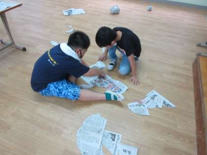 新聞紙の大きさや質感に触れながら,丸めてボールを作ったり,細長く折って滑り台を作ったりしました。また,新聞パズルを作って,友だちと協力しながらもとの新聞紙に戻していました。