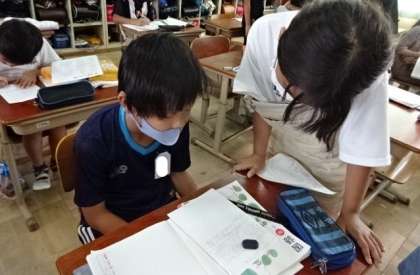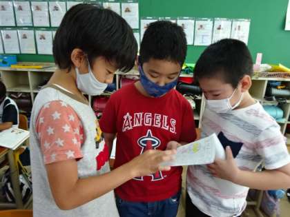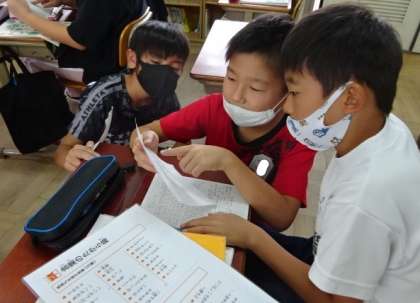 国語科の新聞が出きました。記事を書く時間では,自分で読み,記事の中身をよくするために友達と話す様子がありました。
