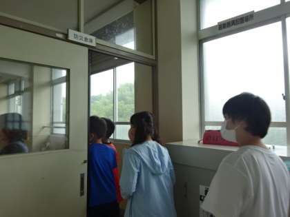 と大きな段ボールに書かれている文字を読み,段ボールの簡易ベットと知って驚いていました。他にも,緊急の際に使う物が置かれていて,そこには「京都市」と書かれていました。京都市が様々な対応をしていることが分かったようでした。