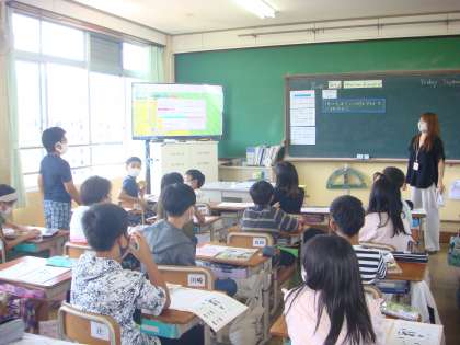 本校では,1・2年生の英語活動,3・4年生の外国語活動,5・6年生の外国語科の指導を英語専科の担当が指導することにより英語教育の充実を図っています。もちろん,ALTとチームティーチングもしております。