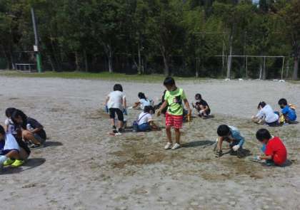 運動会に向けて,そうじの時間に草引きを頑張っています。雨が降った後だったので,子ども達の力でも簡単に抜くことができました。大きな草を引き抜くと,「見てみて〜!こんな大きいの抜けた〜!」と喜んでいました。