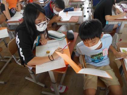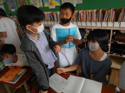 国語科では『たずねびと』という作品を読んでいます。学習のめあてを達成するために自ら問いを立てながら学習を進めています。また,グループコミュニケーションでは,自分の考えを広げたり,深めたりできるようにたくさんの友達と交流しています。