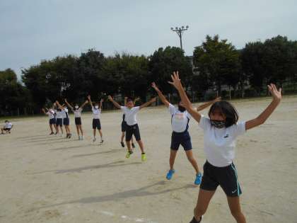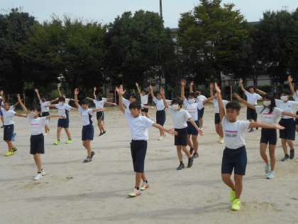 緊急事態宣言の延長により,全校児童がそろっての運動会はできなくなりましたが,団体演技の練習を一生懸命頑張っています。今日は初めて運動場に出て練習しました。体育館や教室で練習するのと違って広い場所では自分の位置を確認するのが難しかったです。5,6年生が気持ちを一つに頑張ってほしいです。